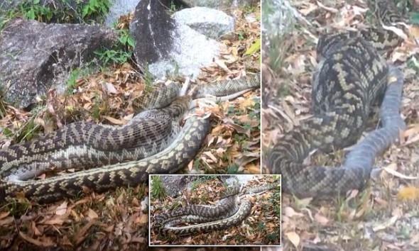 التقط مجموعة من السياح في أستراليا لحظة ابتلاع أفعى ضخمة لحيوان كنغر، على بعد أمتار قليلة من المخيم الذي كانوا يمضون فيه عطلتهم.