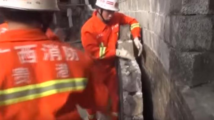 تمكَّن رجال الإنقاذ من إخراج طفلين صينيين في السادسة من عمرهما حشرا بين حائطين لا تتعدى المسافة الفاصلة بينهما 13 سنتيمترا، وقد لقي مقطع فيديو عملية الإنقاذ الحساسة انتشارا واسعا على المواقع الإخبارية.