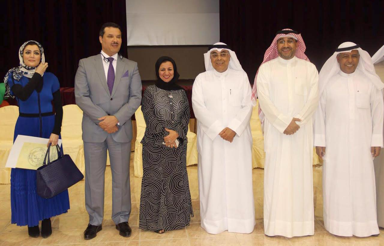 وكيل وزارة التربية للتنمية التربوية والأنشطة فيصل المقصيد والوكيل المساعد للشؤون الفنية في وزارة الصحة الدكتور جمال الحربي خلال حفل تكريم المشاركين