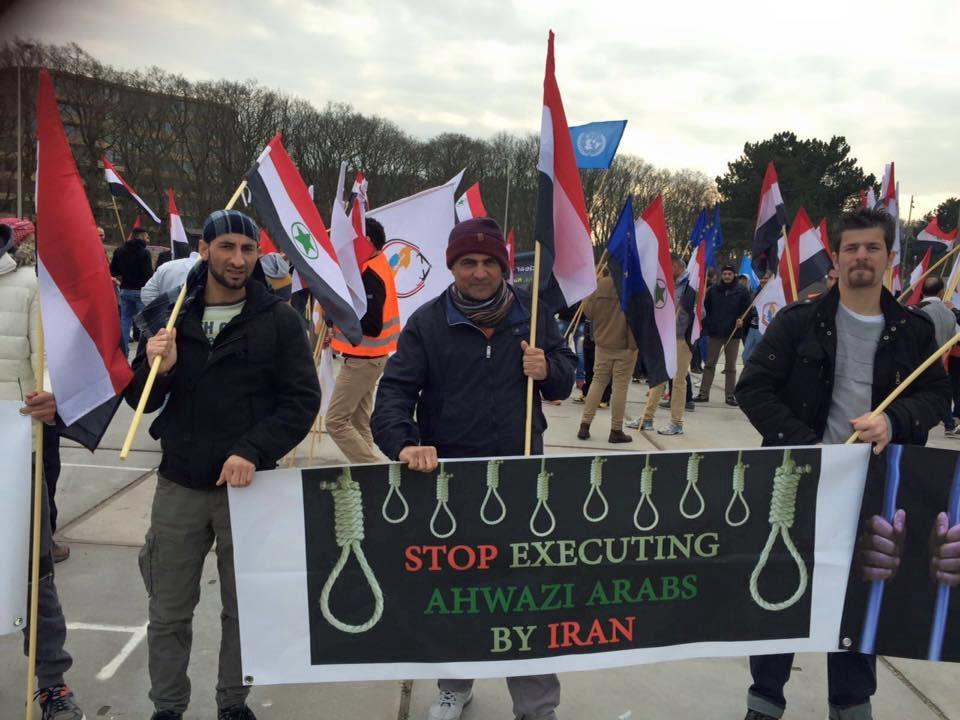 وخلال المظاهرة رفع المتظاهرون أعلام الأحواز وصور شهداء وأسرى الأحواز، ولافتات باللغتين العربية والإنجليزية تندد بالاحتلال الفارسي والأحكام الإعدام التي يصدرها بحق المناضلين الأحوازيين، مطالبين المنظمات الدولية بالتدخل لمنع الاحتلال من تنفيذ عمليات الإعدام والاعتقالات التعسفية بحق الثوار والمقاومين الأحوازيين.