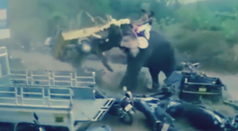 وفوجئ الناس في أحد المعابد الهندوسية في الهند بانقلاب فيل عملاق على الجميع وهياجه بشكل كبير ليحطم كل ما يجد في طريقه، ومن ضمنه سيارة نقل حملها بـ«زلومته» كما اللعبة، فيما استمر الأمر عدة ساعات للسيطرة عليه، رغم اعتلاء شخصين له، حسب ما نشرته صحيفة «دايلي ميل».