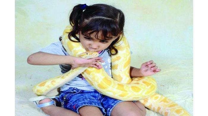 السعودية.. الطفلة «هداية» مروضة لأضخم الأفاعي