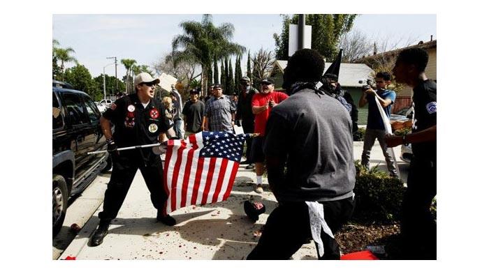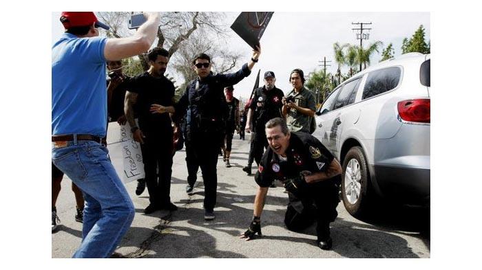 (رويترز) - قالت الشرطة فى ولاية كاليفورنيا الأمريكية إن ما لا يقل عن ثلاثة أشخاص تعرضوا للطعن أحدهم حالته خطيرة فى مشاجرة بين أعضاء فى جماعة كو كلوكس كلان ومحتجين مناهضين قرب تجمع فى انهايم بكاليفورنيا. وقالت السارجنت دارون ويات من إدارة شرطة انهايم إن أربعة أشخاص اعتُقلوا فى أعقاب المشاجرة من بينهم أحد أعضاء جماعة كو كلوكس كلان متهم بالطعن.