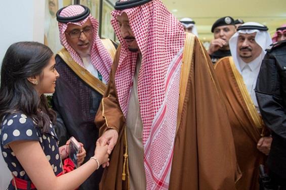 وحرصت الطفلة على التقاط صورة سيلفي مع خادم الحرمين الشريفين، باستخدام هاتفها الذكي، وقد ارتسمت على وجهها ابتسامة بريئة وعفوية مليئة بالثقة، فيما نظر الملك سلمان للكاميرا مبتسماً في مشهد أبوي.