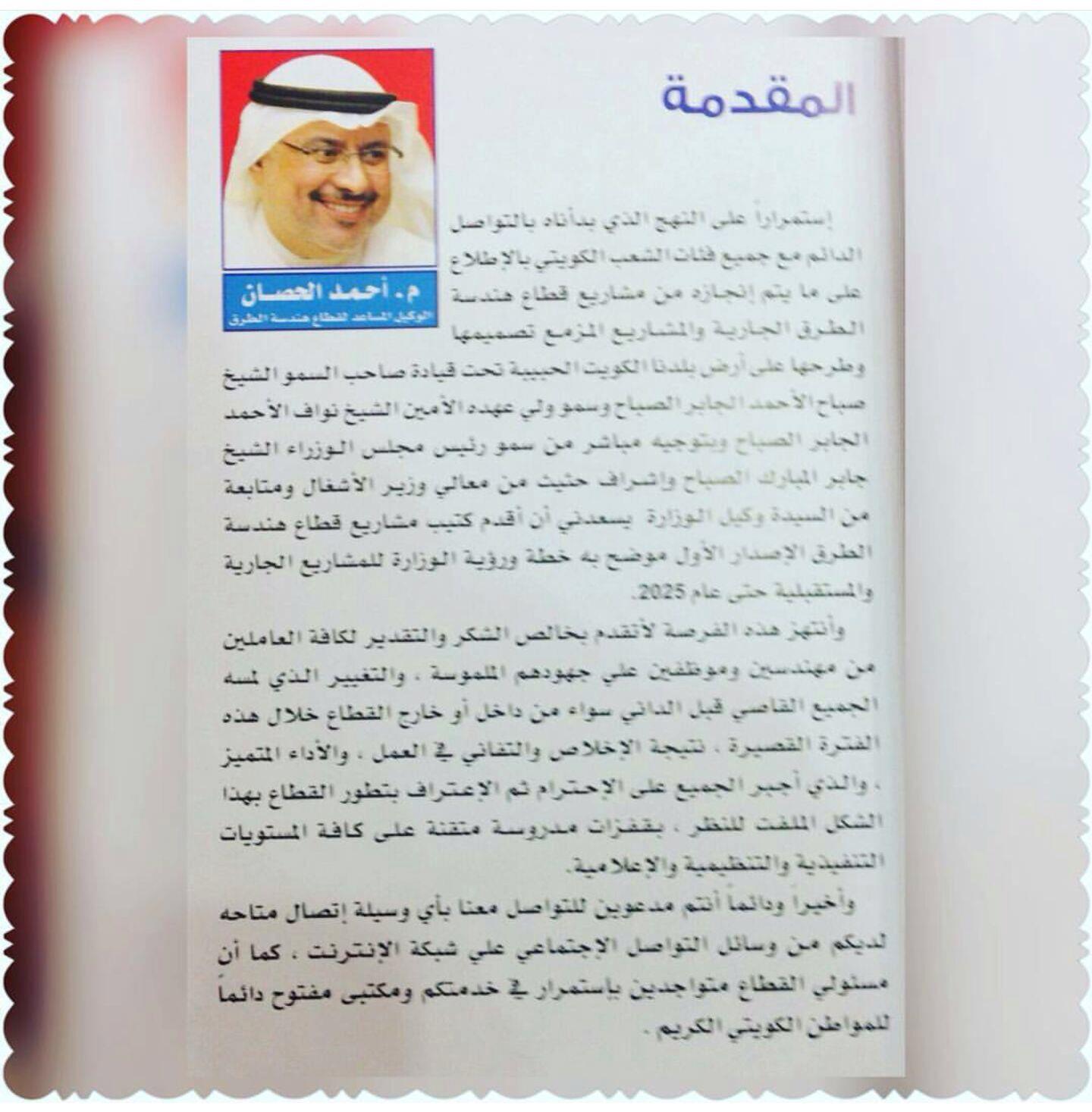 أعلن الوكيل المساعد لقطاع هندسة الطرق في وزارة الأشغال المهندس احمد الحصان عن الانتهاء من إعداد كتيب يحتوي على مشاريع الطرق الجارية والمستقبلية خلال الخطة الخمسية 2016 -2020 لافتا الى ان القطاع سيقوم بتوزيع الكتيب على كافة المسئولين في الدولة وزراء ومحافظين ومختارين ورؤساء جمعيات وكافة المهتمين بالمشاريع التنموية لاسيما مشاريع الطرق وذلك لاطلاعهم على كافة الجهود المبذولة من قبل وزارة الاشغال العامة داخل هذه المشاريع الكبرى التي من شأنها دعم مسيرة التنمية في البلاد.