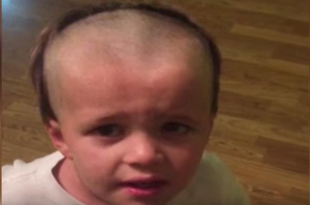 ظهر طفل في مقطع فيديو نُشر على يوتيوب وقد حلق تماما مقدمة رأسه بآلة الحلاقة الخاصة بوالده وترك باقى الشعر، هلع الأب عند رؤية الطفل ولم يتركه إلا عندما عبر عن أسفه ووعد بعدم الاقتراب من آلة الحلاقة مرة أخرى.