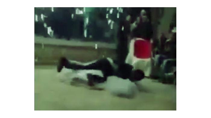 ويظهر في الفيديو، الذي انتشر على موقع التواصل الاجتماعي «فيس بوك»، عريسًا مصريًا يحمل عروسته في حفل الزفاف ويدور بها عدة مرات، قبل أن يحاول إنزالها، إلا أنه لم يستطع أن يسيطر على اتزانه لتسقط منه العروس ثم يسقط فوقها.