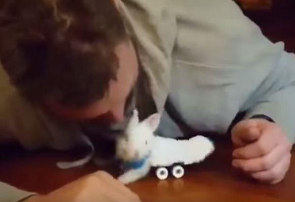 تداول نشطاء على موقع التواصل الاجتماعي فيسبوك، مقطع فيديو يُظهر مزارعاً يحتفي بأرنب صغير مشلول، بعد أن صنع له عجلات يمشي عليها.