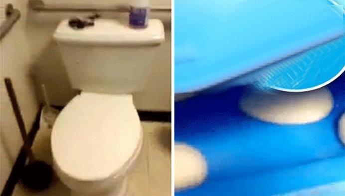 وقد دعّم الرجل مزاعمه بصور فيديو حية لعشرات قطع العجين داخل دورة المياه بالقرب من المرحاض.