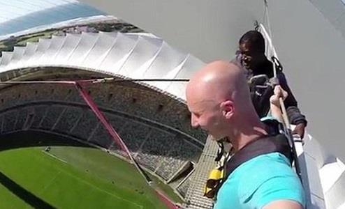 وقالت الصحيفة البريطانية إن ملعب كرة القدم "موسى مابهيدا" في مدينة دوربان بجنوب إفريقيا كان مسرحاً للحدث الذي تم توثيقه بكاميرا "غو برو" وضعها المغامر على خوذته.