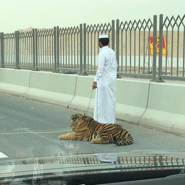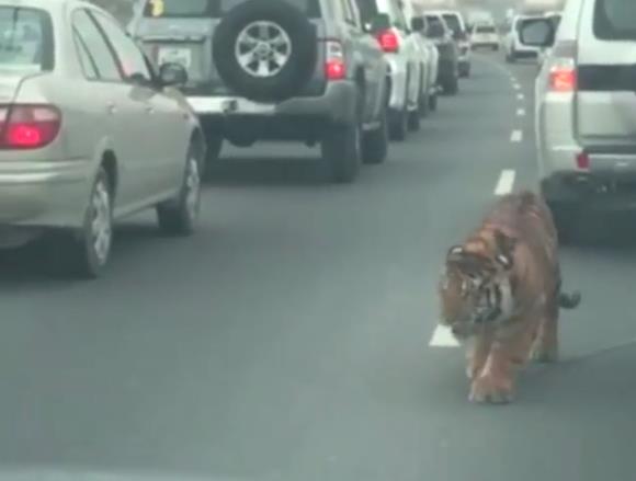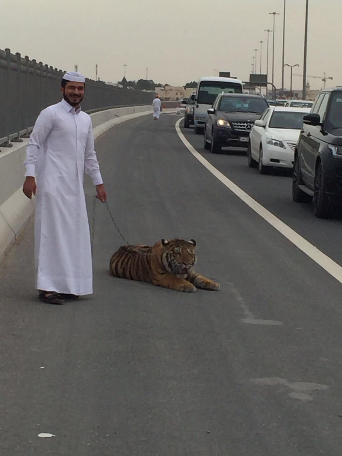 ثار نمر طليق في شوارع الدوحة العاصمة القطرية، ذعر مستعملي الطريق الذين فوجئوا بالحيوان المفترس بينهم على الطريق حراً طليقاً.