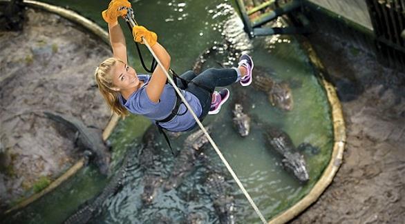 وذكرت صحيفة "ديلي ميل" على موقعها الإلكتروني أن المنتزه يسمح للزوار بالتأرجح فوق التماسيح الضخمة، في مغامرة تتطلب الكثير من الجرأة والشجاعة والقوة.