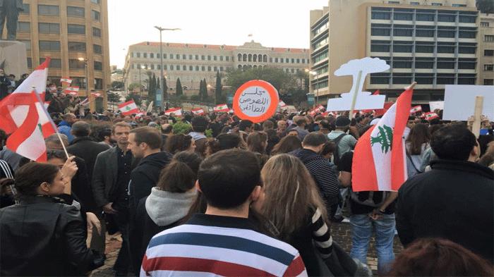 ولبى أكثر من ثلاثة آلاف شخص الدعوة، وتظاهروا في وسط بيروت. وحمل المتظاهرون شعارات تطالب بـ"اسقاط الحكومة"، وهتفوا "الشعب يريد اسقاط النظام" و"ثورة ثورة" و"يسقط يسقط حكم الازعر". وارتدى البعض قمصاناً كتب عليها "حكومة الزبالة".