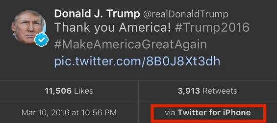 في الوقت الذي يدعو فيه ترامب إلى مقاطعة منتجات شركة أبل والتوجه لاستخدام أجهزة سامسونغ، لم يتوقف عن استخدامه عن هاتف "آي فون"، حيث غرد المرشح الرئاسي بعدد من التغريدات على حسابه في تويتر أظهرت أنه يغردها من هاتفه الذكي التابع لأبل، بحسب موقع "كالت أوف ماك" المعني بأخبار أبل.