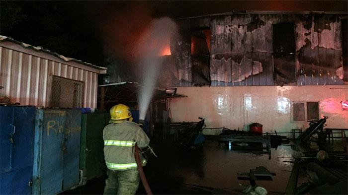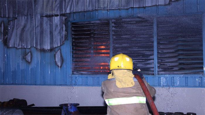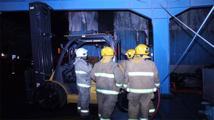 بالفيديو - فرق الإطفاء تسيطر على حريق مستودع في منطقة ميناء عبدالله
