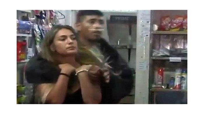 أظهر مقطع فيديو نشر على موقع يوتيوب لحظة قيام لص باحتجاز امرأة في أحد المحال التجارية في مدينة بوينس آيريس الأرجنتينية، للتفاوض على هروبه بعد وصول الشرطة إلى المكان.