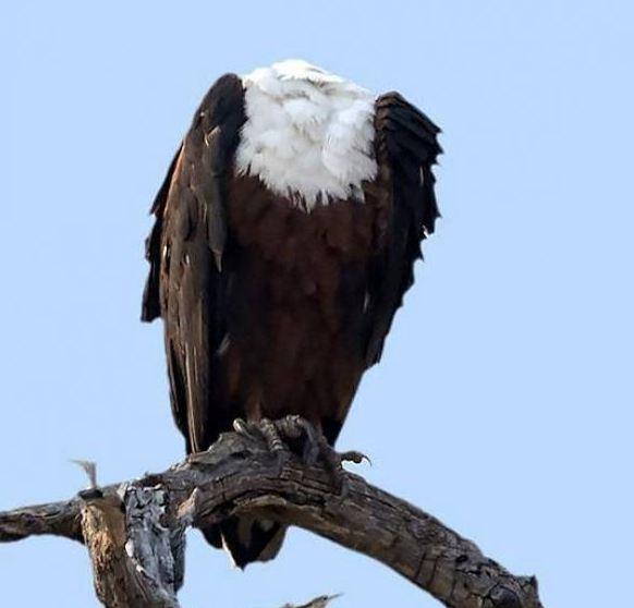 وأوضح المصور الأفريقي مارك دريسدال (55 عاماً) أن العقاب الأفريقي السماك، لم يكن مقطوع الرأس، مثلما توحي الصورة للوهلة الأولى، بل كان الطائر ملقياً برأسه إلى الخلف، لحظة التقاط الصورة.
