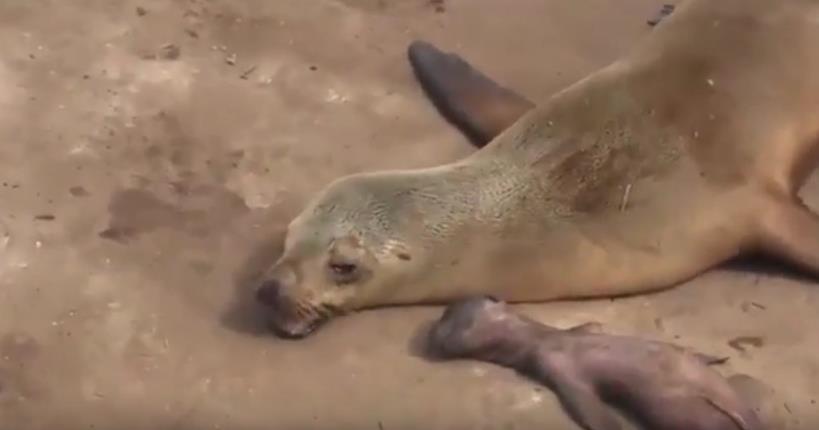 أظهر مقطع فيديو يفطر القلوب، فقمة ثكلى وهي تبكي على فراق صغيرها وتتلوى من الحزن حول جثته على شاطئ بمدينة سان دييغو الأمريكية.