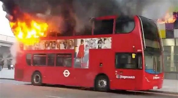 تناقلت مواقع التواصل الاجتماعي في بريطانيا مقطع فيديو يظهر لحظة اندلاع النيران في حافلة بطابقين وسط لندن.