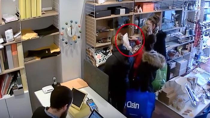 وتظهر إحدى النساء اللواتي يعتقد بأنهن من أوروبا الشرقية، وهي تسرق عدة ساعات ثمينة تبلغ قيمة كل منها 200 جنيه استرليني، بينما تقوم زميلتها بارتداء إحدى الساعات في معصمها وتقوم أخرى بإلهاء موظف المتجر.