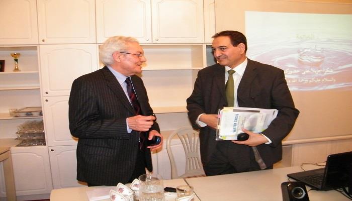 وعرض السفير الدكتور بورحمة في ختام محاضرته شرائح لصور من بعض مشاريع صندوق التنمية الكويتي من ضمنها صور لتمويل المشاريع المائية في الأراضي الفلسطينية.
