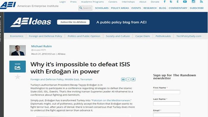 أكد المركز البحثي الأمريكي "إنتربرايز" إنه من المستحيل هزيمة تنظيم داعش الإرهابي فى ظل وجود الرئيس التركي رجب طيب أردوغان فى السلطة. وقال المركز البحثي الأمريكي في تقرير كتبه الباحث مايكل روبين إن الرئيس المستبد أردوغان ذهب إلى واشنطن للمشاركة فى مؤتمر يبحث إستراتيجيات هزيمة داعش، لكن الأمر أشبه بعدوه المرشد الأعلى فى إيران آية الله علي خامنئى لمؤتمر لمحاربة العداء للسامية حسبما جاء في صحيفة "اليوم السابع" المصرية. ورأى المركز أن أردوغان قد حول تركيا إلى باكستان جديدة على البحر المتوسط، وربما يقبل الدبلوماسيون بدافع الأدب الوهم القائل بأن أردوغان يريد أن يحارب الإرهاب، لكن بعد سنوات من الإنكار أصبح هناك إجماع واسع على أن تركيا تعرقل الحرب على الإرهاب أكثر مما تفعله لتعزيزها، والأمر لا يتعلق فقط بأن تركيا تسمح بعبور مقاتلين من أكثر من 100 دولة عبر أراضيها إلى سوريا والعراق، كما أن إلقاء اللوم على ضعف الأمن على الحدود لم يمنع تصوير الصحفيين لأجهزة المخابرات التركية وهي تدعم داعش وتقدم له الإمدادات، لكن المشكلة مع أردوغان أنه لا يؤمن بأن الإرهاب موجود، حتى عندما احتجز داعش 24 من الدبلوماسيين الأتراك وسائقي الحافلات كرهائن فى الموصل، تجنب أردوغان وصف محتجزي الرهائن بالإرهابيين، كما يقول روبين، سواء قبل إطلاق سراح الرهائن أو حتى بعدها. وتابع التقرير قائلاً إن رفض أردوغان للاعتراف بالمسلمين السنة الذين يبررون العنف بالدين قد جعل تركيا نفسها عرضة للإرهاب وأضعف جهودها الأكبر لمحاربة الإرهاب. وأشاد معهد إنتربرايز برفض الرئيس باراك أوباما لقاء أردوغان خلال زيارة الأخير لواشنطن، فى الوقت الذى كان يؤيد فيه الرئيس التركي من قبل، وتظل المشكلة أن حب الدبلوماسيين للأدب والوهم لا يزال مستمرًا، فمعاملة أردوغان على أنه جزء من حل المشكلة وليس هو المشكلة الأساسية، وهو أشبه بالقول إن "غربالا هو فى الواقع وعاء زجاجي"، ثم نتعجب من أنه لا يستطيع أن يحتفظ بالمياه.