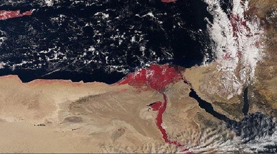 نشرت وكالة الفضاء الأوروبية صورا جديدة التقطها القمر الصناعي "سانتينال 3 إيه" يظهر فيها نهر النيل باللون الأحمر الداكن الشبيه بلون الدماء، بحسب ما ذكر موقع روسيا اليوم.