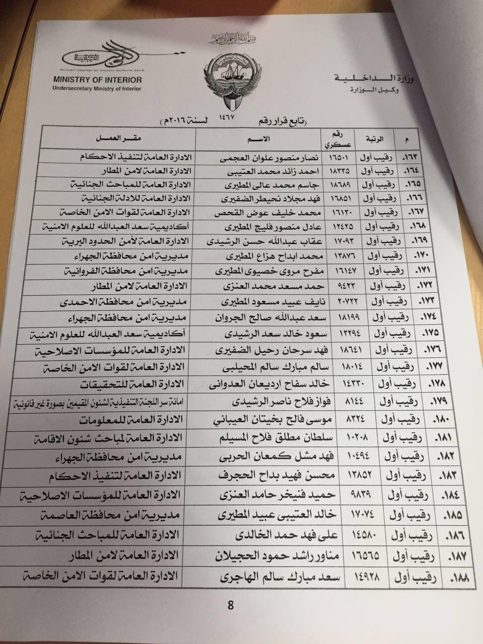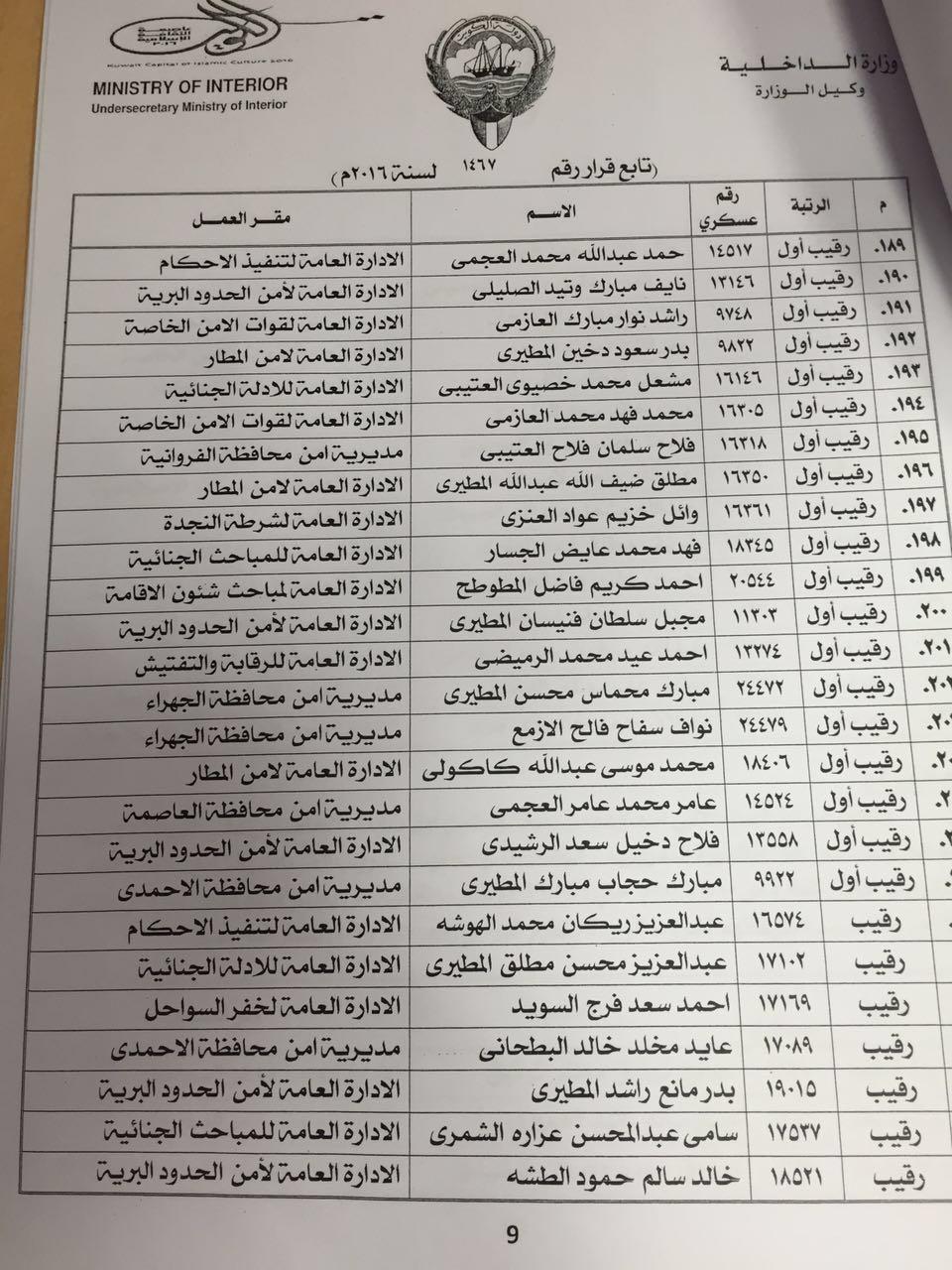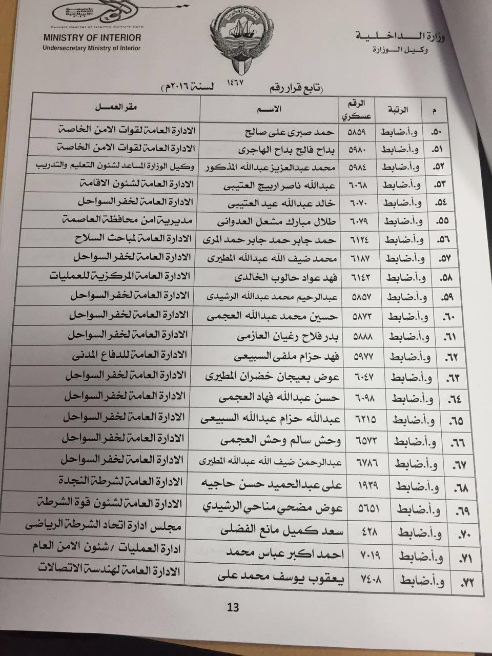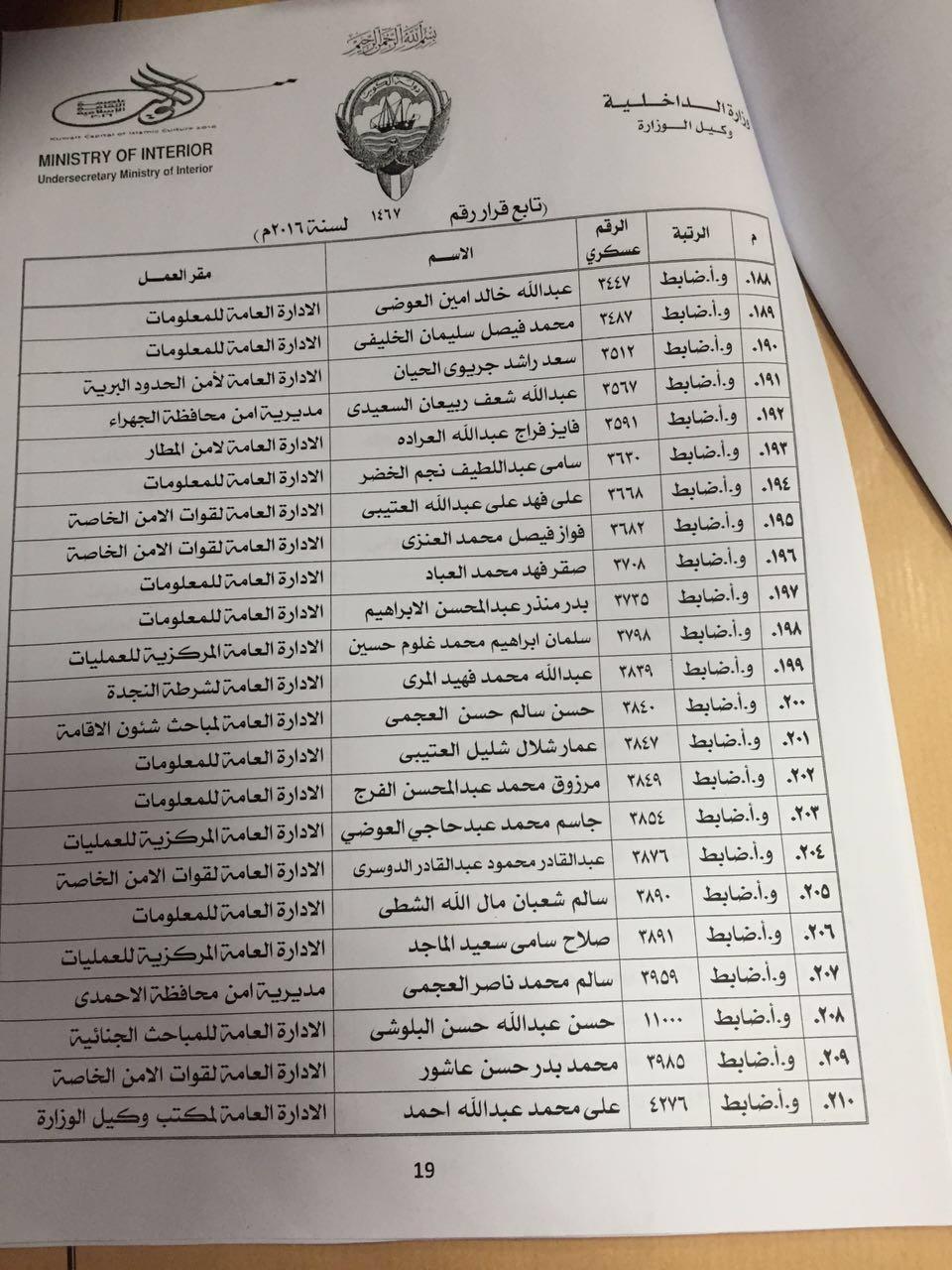 ونص القرار في مادته الأولى على «يلحق ضباط الصف الجامعيون وعددهم 229 بالدورة التدريبية الـ 10 لدى معهد تدريب الضباط التابع للإدارة العامة للتدريب خلال الفترة من 10/4/2016 حتى 1/12/2016 تمهيداً لترقية من يجتاز منهم هذه الدورة إلى رتبة ملازم، وذلك بعد استيفائهم الشروط الواردة بالقرار رقم 1285/2001.