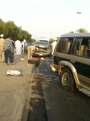 أصيب ثلاثة اشخاص بكسور وجروح جراء حادث مروع على طريق الدائري الخامس، وتم نقلهم الى المستشفى.