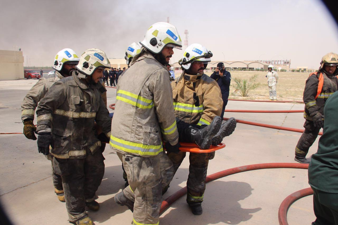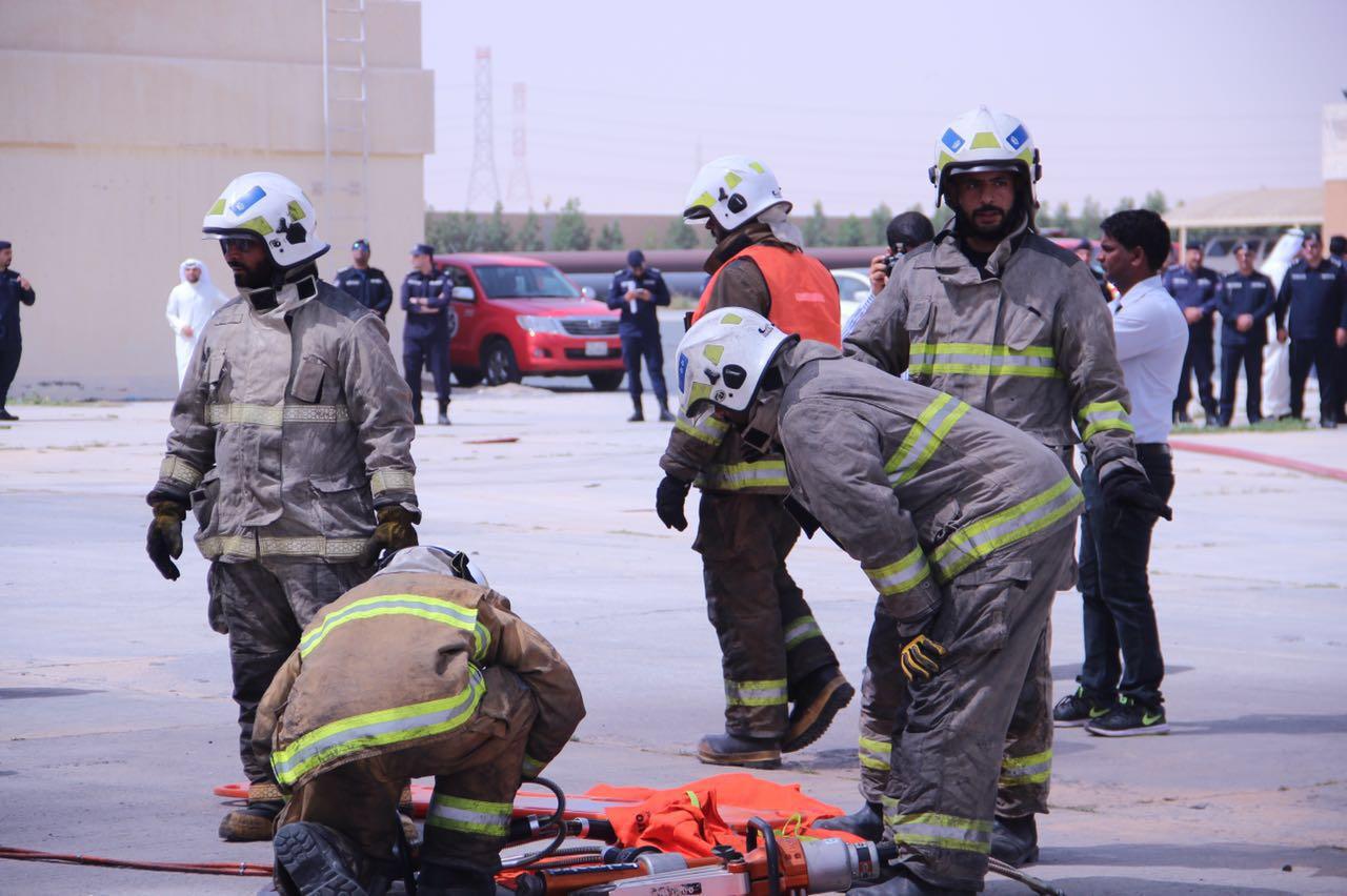 وأضاف التركيت  ان السيناريو الذي تم وضعه لحادث انفجار ونتج عنه حريق مبنى لعمل تخريبي قد أسفر عن وقوع ضحايا ومصابين، كما شمل السيناريو وقوع حادث تصادم بين مركبتين أسفر عن انحشار شخص واصابته، وقد شارك في السيناريو للحادثتين ٢٤ رجل اطفاء.