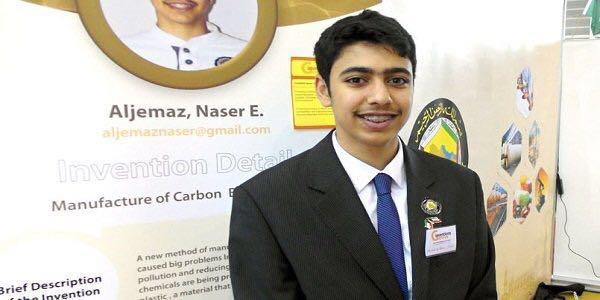 ويدخل الشاب الكويتي الذي يعد اصغر مخترع المسابقة بعد اختراعه ابتكارا يحول غاز ثاني اكسيد الكربون الى لدائن.