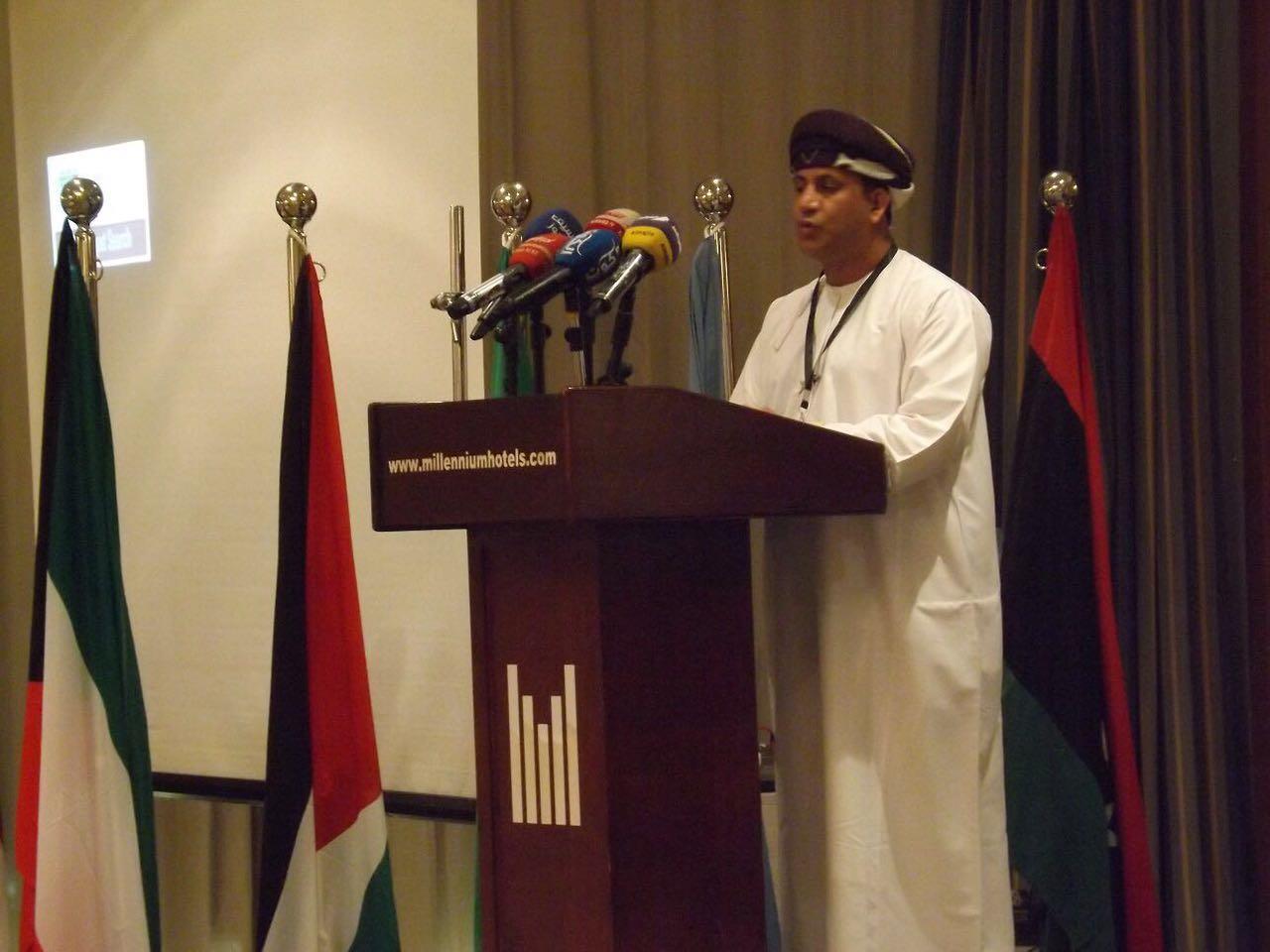 وفي هذا السياق، قال رئيس المؤتمر العام لاتحاد المدربين العرب من سلطنة عمان الاستاذ أحمد البورسعيدي في البداية اود ان اوصل سلامي إليكم ممتدة من مسقط العامرة إلى كويت السلام ومن عاصمة رجل الحكمة إلى عاصمة رجل الإنسانية فبالأمس القريب كان اجتماعنا في مسقط العامرة واليوم لقاؤنا يتجدد في كويت الانسانية حيث بناء الانسان وتنمية وتأهيله وتدريبه فلا شك إنها الكويت بابراجها الشامخة علوا تحكي قصة شموخها التنموي انسانا وبناءا وتتجلى في ذهني بمناسبة هذا التجمع العربي أبيات من قصيدة الشاعر الدكتور عبدالله العتيبي : كويت والعرب الاهل والنسب ، كأنهم حولها العين والهدب ، بالامس القريب كان الحضور في مسقط العامرة مهيبا والتوصيات حلمت عمقا مشاركين من اقطار الوطن العربي ضمهم هذا الاتحاد الواعد تحت لوائه للخروج بآليات عملية نحو تجويد مهنة التدريب في الوطن العربي.