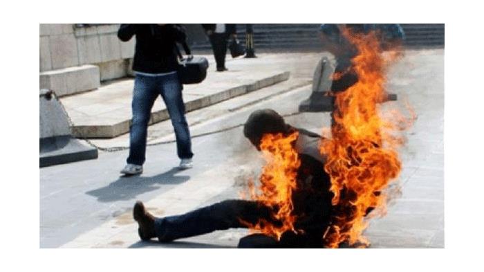 شاب يضرم النار في نفسه