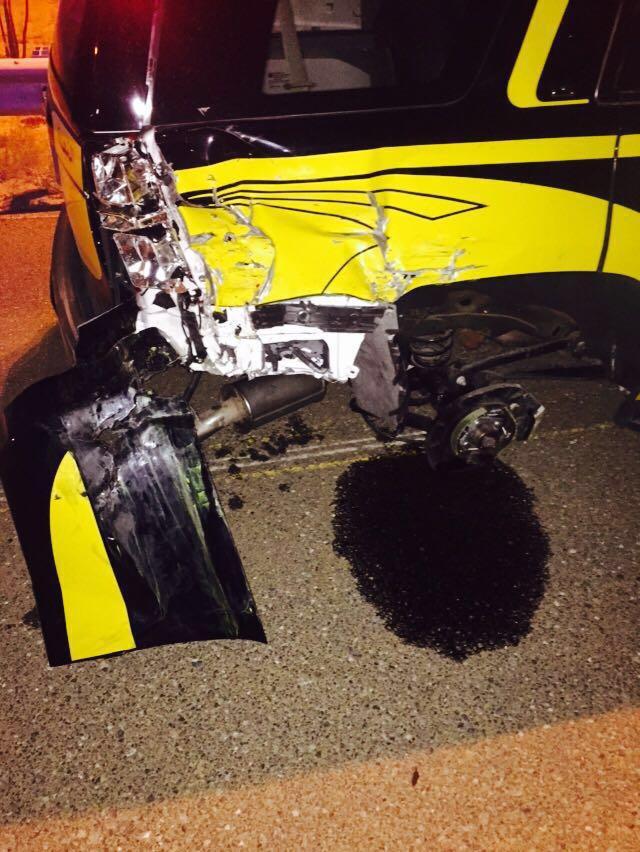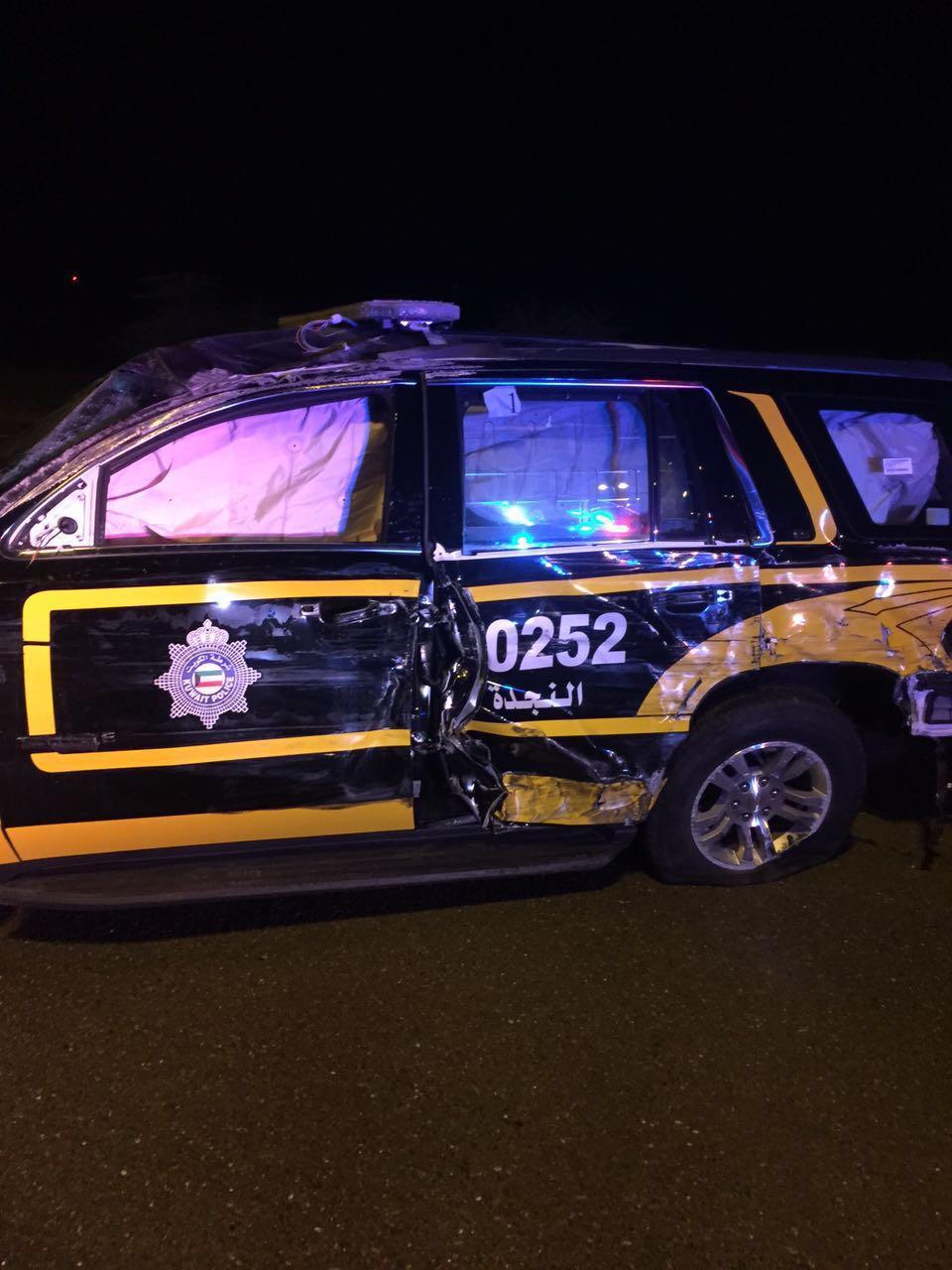 لحقت تلفيات جسيمة بسيارة أحد الدوريات لقطاع النجدة الجديدة، وتعتبر هذه الصور هي أول صور لحادث لهذا النوع من السيارات الذكية الجديدة، التي أدخلتها وزارة الداخلية.