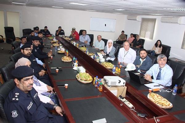 رافق العميد خالد عبدالله فهد من قطاع الوقاية كلاً من: العقيد مهندس حسن النعمة مدير ادارة وقاية محافظة الفروانية والمهندسه سلافة الياسين مدير ادارة وقاية محافظة العاصمة والمقدم مهندس أنور الحجي مراقب التفتيش والمتابعة والرائد ثامر فهد من مكتب نائب المدير العام لشئون قطاع الوقاية وضابط إرتباط وقاية محافظة حولي الملازم عبدالله المذن.