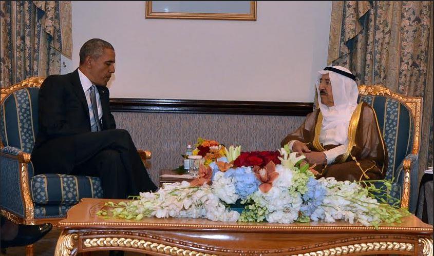 كونا - التقى حضرة صاحب السمو أمير البلاد الشيخ صباح الاحمد الجابر الصباح حفظه الله ورعاه صباح اليوم فخامة الرئيس باراك اوباما رئيس الولايات المتحدة الأمريكية الصديقة وذلك بقصر الدرعية بالرياض.