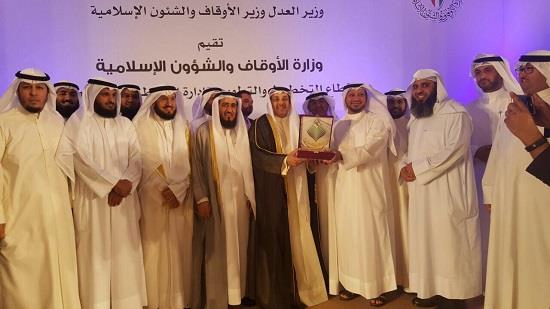 كما نال مدير ادارة مساجد محافظة حولي الدكتور خالد الحيص تكريما خاصا ضمن المكرمين في جائزة المدير المتميز على مستوى الوزارة .