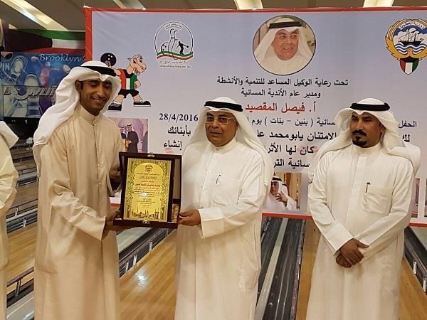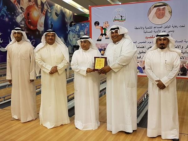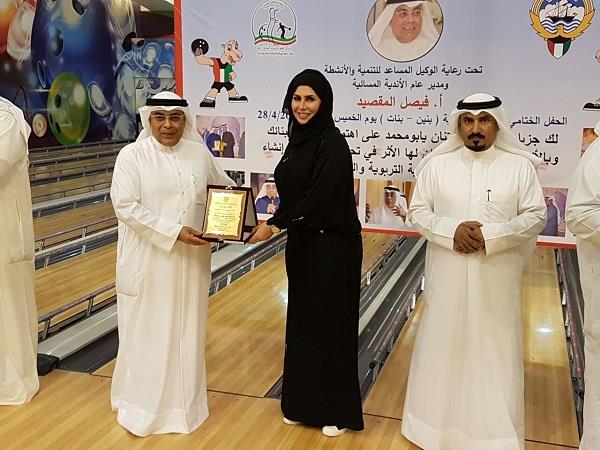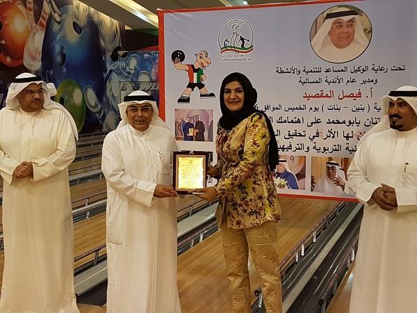 المقصيد يكرم عايدة الكندري رئيسة نادي مبارك الكبير للبولينغ بنات