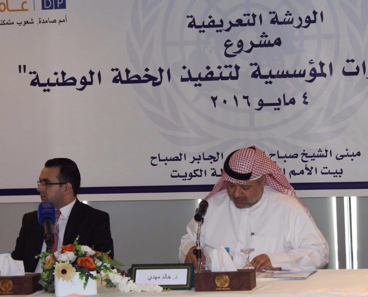 ومن جهته قال ممثل برنامج الامم المتحدة الانمائي محمد بطاينة ان "مشروع تنمية قدرات المؤسسية لتنفيذ الخطة الوطنية الانمائية للكويت يمثل خطى مستقبلية لتحقيق أهداف التنمية المستدامة في الكويت ، وتأتي هذه الورشة تنفيذا لبرامج الامم المتحدة الانمائي لإدارة المشاريع"، لافتا إلى ان "مشروع تنمية القدرات المؤسسية لتنفيذ الخطة الوطنية بدأ في يوليو العام الماضي، ويستمر حتي ٢٠١٨ وهو ينفذ من قبل الأمانة العامة والإدارة المركزية للاحصاء وبرنامج الامم المتحدة ويوفر إطارا للدعم الفني ونقل المعرفة والخبرات للامانة العامة للمجلس الاعلي للتخطيط وجهاز الإحصاء المركزي والجهات الحكومية من خلال توفير خبراء لتحقيق أهداف الخطة الوطنية".