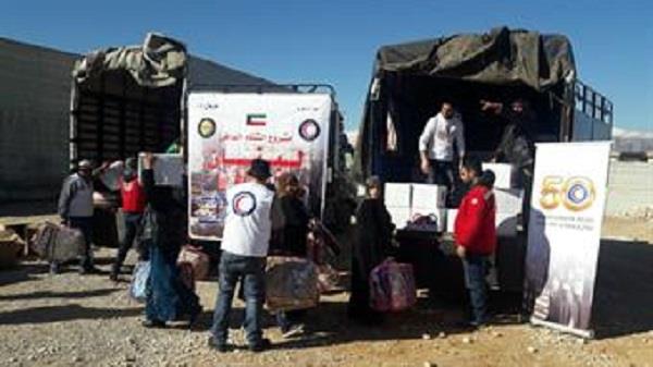 كونا - وزعت جمعية الهلال الاحمر الكويتي بالتعاون مع الصليب الاحمر اللبناني اليوم الجمعة مساعدات انسانية على عدد من النازحين السوريين في بلدة (القاع) الحدودية شرقي لبنان.