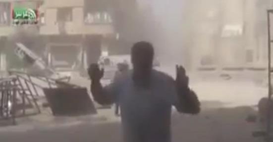 فيديو - سوري يصرخ من تحت القصف: اضربونا بالذرة.. بدنا موتة واحدة