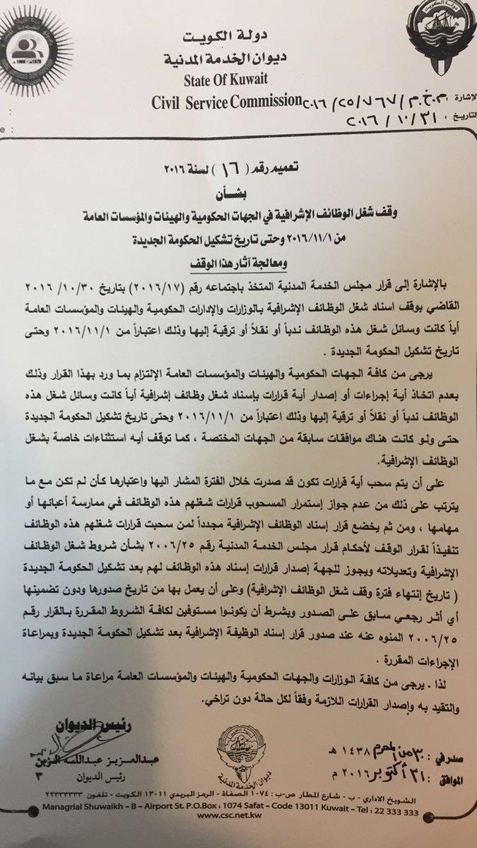 وقال تعميم صادر عن الديوان بهذا الشأن ان شغل تلك الوظائف الاشرافية غير مسموح به في هذه الفترة حتى لو كانت هناك موافقات سابقة من الجهات المختصة مشيرا الى انه اي استثناءات لشغل الوظائف الاشرافية موقوف حاليا.
