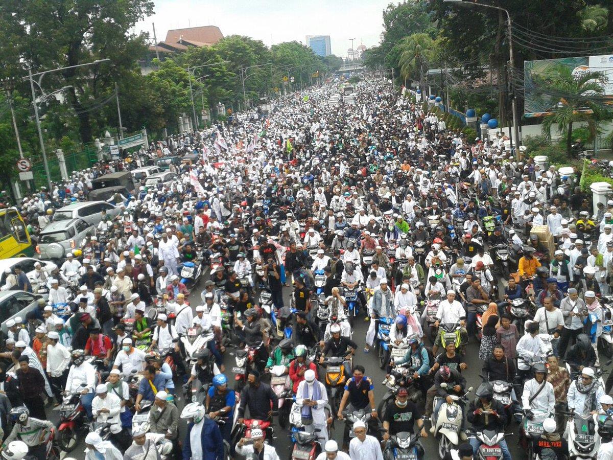وتجمع المتظاهرون في مسجد الاستقلال، أكبر مساجد جاكرتا ويعتزمون أن ينطلقون منه في مسيرة إلى مبنى البلدية والقصر الرئاسي المجاور.
