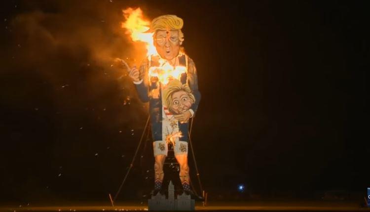 أحرق سكان بلدة إدنبريدغ جنوبي العاصمة البريطانية لندن دمية للمرشح الجمهوري في انتخابات الرئاسية الأمريكية دونالد ترامب ضمن احتفالات بونفاير نايت السنوية.