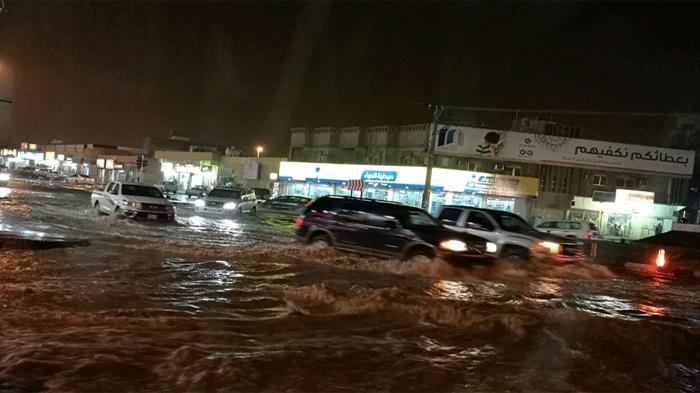 السعودية.. أمطار «المزاحمية» تغمر الشوارع وتتسبب في حوادث مرورية