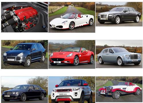 وتتصدر المزاد السيارة الأنيقة Ferrari F430 F1 spider ذات اللونين الأحمر والأبيض، التي تبلغ قيمتها 120 ألف جنيه إسترليني. تبلغ السرعة القصوى لهذه السيارة 382 كم/ساعة تقريباً، ويمكن أن تصل سرعتها من صفر إلى 90 كم/ساعة في أقل من 4 ثوان. تعد سيارة فيراري كاليفورنيا موديل 2012 إحدى السيارات الأخرى المعروضة للبيع، وبإمكانيات مدهشة مشابهة، تبلغ قيمتها حوالي 110 آلاف جنيه إسترليني. وكلا النموذجين يسجل عداد المسافة فيهما أقل من 750 كم حتى الآن.