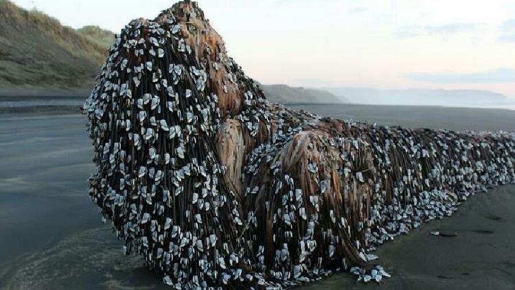 شهد شاطئ نيوزيلندا ظاهرة غريبة وصفها البعض بـ"شجرة عيد الميلاد الشاطئية" بعد أن غطت كائنات غريبة بحرية جرفا صخريا ترك السكان في حيرة من أمرهم.
