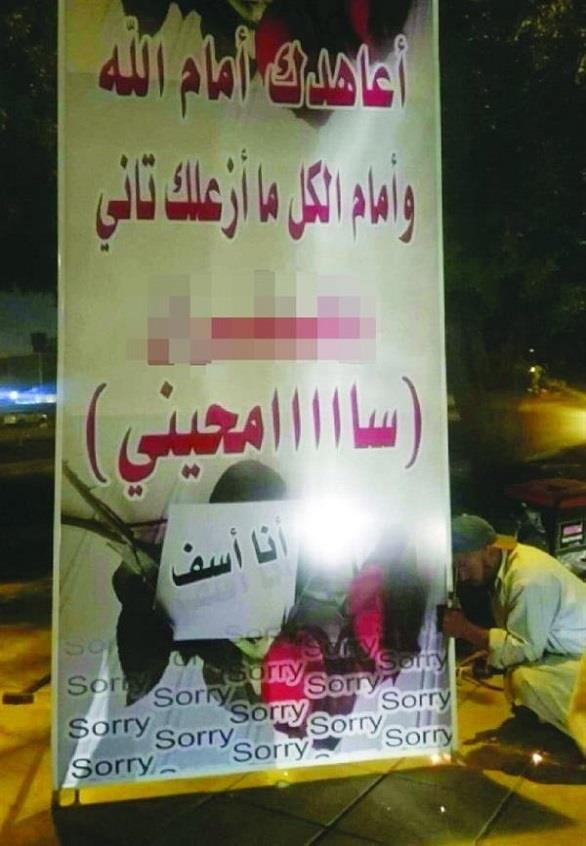"أنا آسف سامحيني" عبارة كتبها شاب في المدينة المنورة على لافتة كبيرة وضعها في أحد الشوارع أمام مدخل كلية الطالبات، تضمنت اعتذاراً موجهاً لفتاة، غير أن الجهات المختصة سرعان ما قامت بإزالتها.