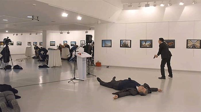 وقال شاهد كان في مكان حادث اغتيال السفير الروسي إنه سمع إطلاق نار من داخل المعرض الفني لبضع دقائق بعد أن اقتحمت القوات الخاصة المبنى.