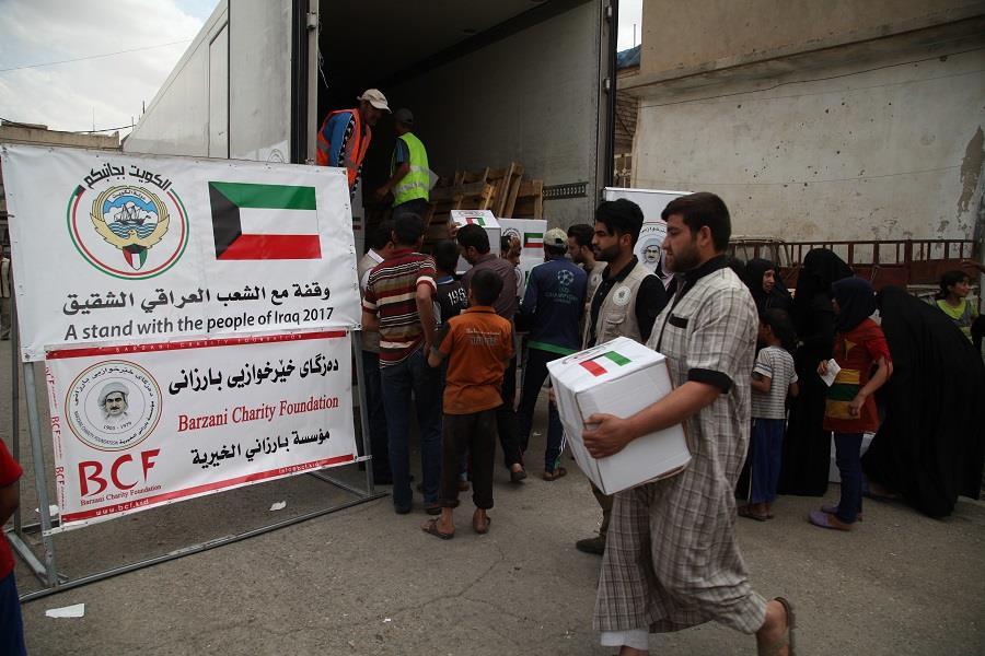 (كونا) -- وزعت دولة الكويت من خلال الهلال الاحمر الكويتي اليوم الاربعاء 2500 سلة غذائية على اهالي الاحياء المحررة من الجانب الايمن من مدينة الموصل شمالي العراق وقال مسؤول توزيع المساعدات الانسانية في مؤسسة البارزاني الخيرية محمد بهاء الدين لوكالة الانباء الكويتية (كونا) إنه "بغية ايصال المواد الغذائية الضرورية الى الاحياء المحررة حديثا من الجانب الايمن من مدينة الموصل بادرت دولة الكويت بارسال المواد الغذائية الضرورية على الاهالي في تلك الاحياء".